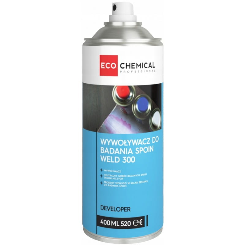 WELD 300 ist ein Entwickler zur zerstörungsfreien Oberflächendurchdringungsprüfung an einer Schweißnaht. Die Forschung nutzt das Phänomen der Kapillarität, das darin besteht, dass die Flüssigkeit in enge Räume - Spalten - eindringt und dann aufsteigt. Diese Art der Forschung ist weit verbreitet, kostengünstig und sehr effektiv.