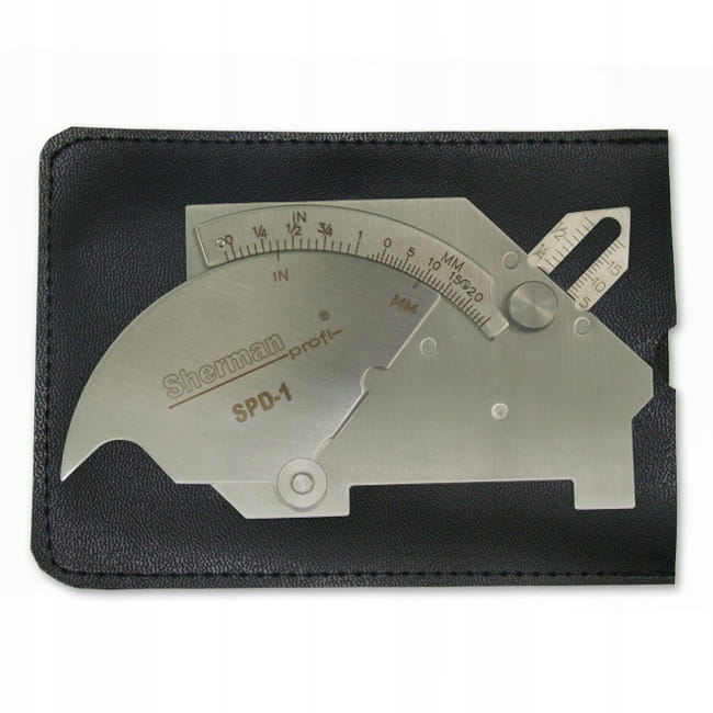 Das Schweißgerät SPD-1 ist ein Nockenbrückengerät zur Messung von Schweißparametern sowie des Kantenabstands und des Abstands zwischen geschweißten Blechen und Rohren. Es zeichnet sich durch geringe Größe und einfache Handhabung aus. Es ermöglicht die Messung von Kopfabständen, Kehlnahtdicke, Verdrängungsbetrag, Fluttiefe und Fasenwinkel.